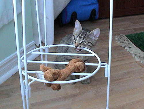 Докладываю, что Коля благополучно приехал в Торонто, закончив выступать в Цирке дю Солей. Квартиру одобрил, особенно содержимое. Особенно котика, которого назвали Эрастом Петровичем Фандориным за острый исследовательский ум. Но язык сам все время выворачивает на "Мурзика". Так зовут нашего первого кота, оставленного в Питере любящим его дядюшке с тетушкой. Маша против, так что каждый зовет его на свой манер. Вот он какой у нас: