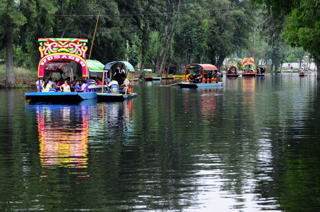 Были в районе озера Xochimilko, катались вот на такой на расписной шаланде:
