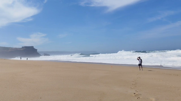 Вчера ездила с экскурсией в Nazare (голоса зову-ут меня...) Там в самые высокие волны в Португалии бывают, выше 30 метров. Ибо подводный каньон заканчивается высокой скалой. Плюс шторма. Тут уже практически лето и жарища, при почти штилевом океане волны все равно по пять метров. И это просто прекрасно. Стихия!! В поездке был еще чудесный момент с остановкой в заповеднике с оленями. Одного мы покормили морковкой. Фоточки под катом. Это я взлетаю. Обрыв - Центральная площадь Назарэ. Верхний этаж. А это - вид сверху на партер. Люди на пляже выглядят букашками. Масштаб волны понятен. <…>